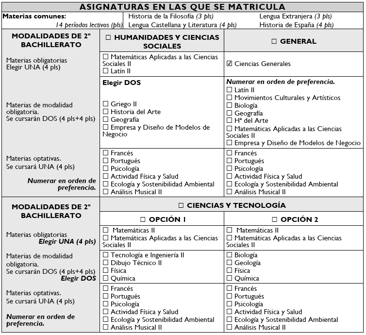 CARACTERÍSTICAS DE LAS OPTATIVAS QUE OFERTA EL CENTRO